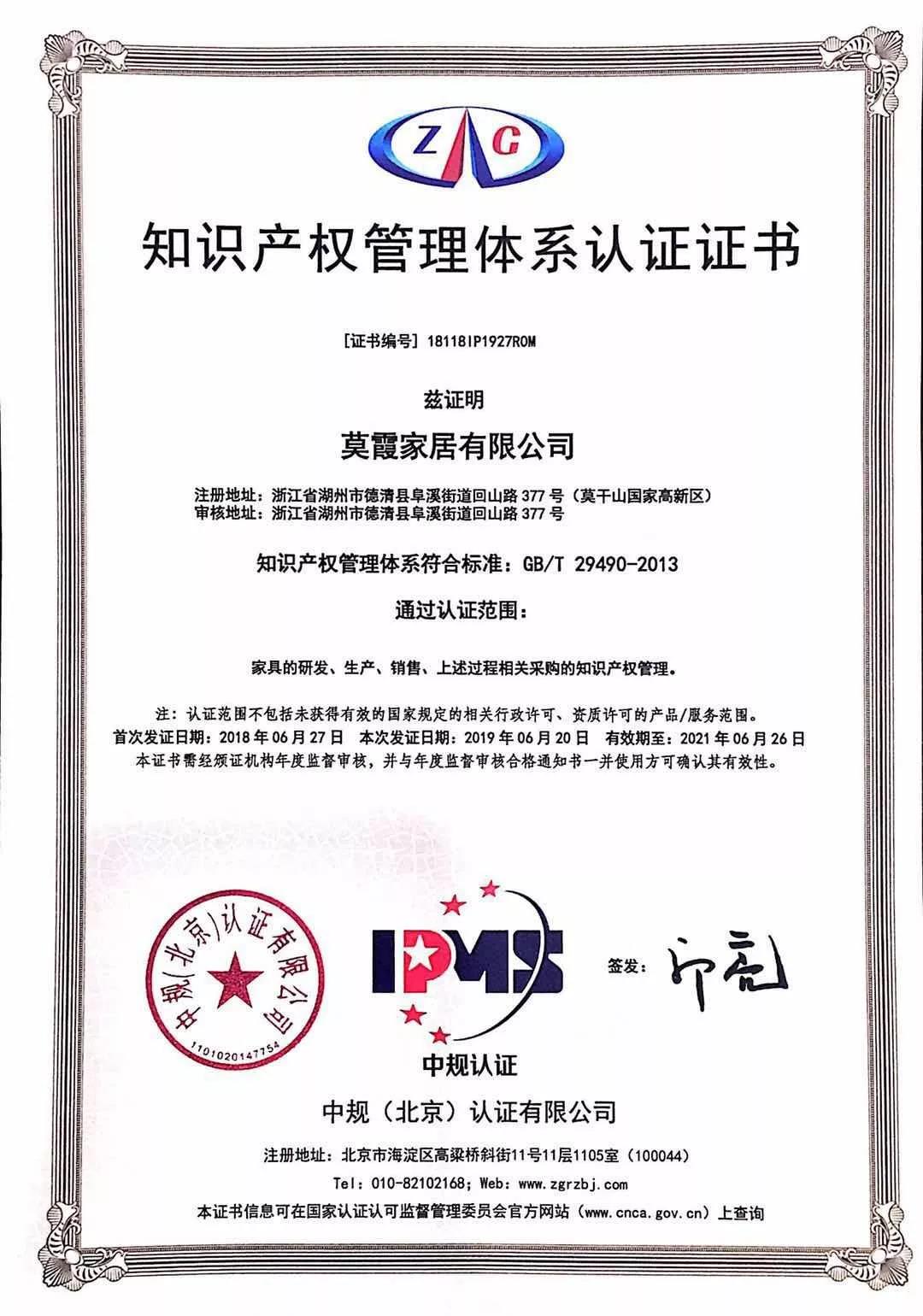 通过了知识产权管理体系认证。