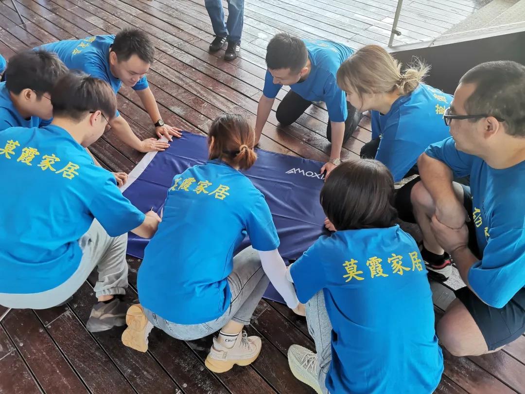 2021年6月21日清晨,公司组织青年员工来到了上渚山奇幻谷,开展户外拓展团建训练活动,希望通过这次活动进一步加深全员之间的沟通了解,增强团队的凝聚力。 在教练的带领下,全体成员做了热身活动。热身活动结束后在各组的集思广益下,四支优秀的战队产生了。 随后四支队伍展开了一飞龙真人游戏的大比拼,比拼过程中引得大家哄堂大笑。透过这项活动大家凝心聚力,互帮互助,每位团队成员为了展示最好的团队风采而共同努力。 午饭后稍作休息,立马迎来了下午难度更高的团队任务。 首先我们选出了两位“团队管理者”,他们是团队任务的计划和决策者,也是团队责任的承担者,也是团队健康氛围的促进者和协调者。